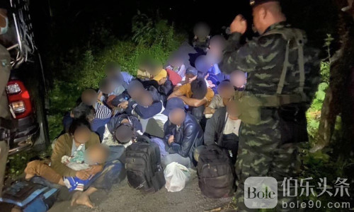 伯乐头条专讯:6月12日,泰国第九步兵师联合北碧府警方在通帕蓬县展开突袭,抓获29名非法入境的缅甸劳工。这群劳工承认通过“人头账户”支付每人7万泰铢的偷渡费用,企图以泰国为中转站前往马来西亚。警方在追查过程中截停了可疑皮卡车,司机弃车逃入森林。