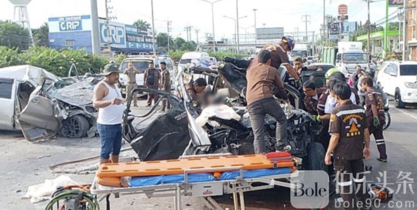 伯乐头条专讯:一名年轻男子被发现死在一辆皮卡车的残骸中。当时,这辆皮卡车突然越过中间隔离带,冲入对向车道,正面撞上迎面驶来的车辆,造成包括他在内的3人死亡。这起事故发生在佛统府的Phetkasem路上,现场画面令人毛骨悚然。