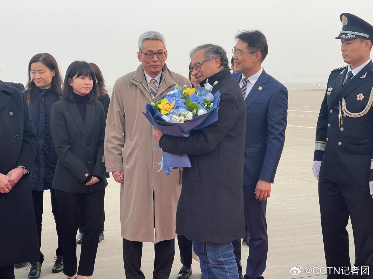 10月24日上午,哥伦比亚共和国总统古斯塔沃·佩特罗·乌雷戈乘飞机抵达北京首都国际机场。应国家主席习近平邀请,佩特罗总统将于10月24日至26日对中国进行国事访问。