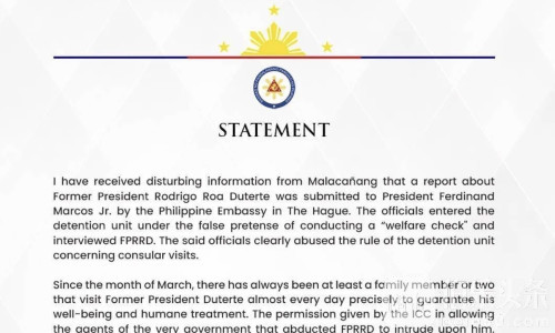 萨拉直言,这些官员的行为严重违反了拘留所的探视规定,完全是“马科斯总统伪装成领事职能的命令”。她强调,自三月以来,杜特尔特几乎每天都有家人前去探望,以确保其健康和待遇。但此次所谓的“福利检查”纯属虚假,甚至可能让杜特尔特的生命陷入直接危险。