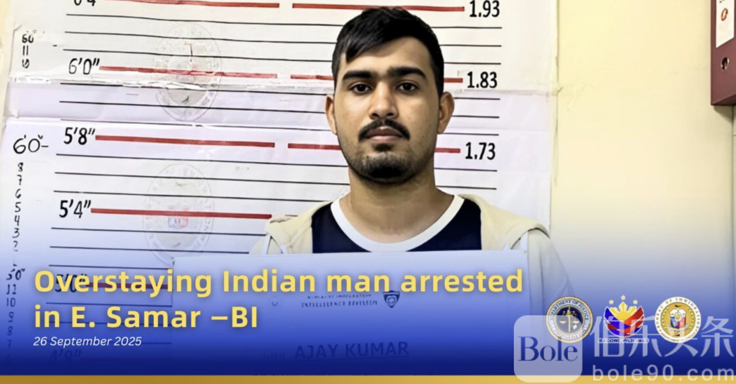 据移民局9月22日通报,东萨马省巴兰吉加镇Barangay 1情报人员拘捕了一名21岁的印度籍男子Ajay Kumar。Kumar自2023年7月入境菲律宾后长期未续签签证,逾期停留超过两年,因公然违反移民法成为执法目标,被情报小组与当地警方联合拘捕。