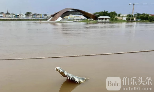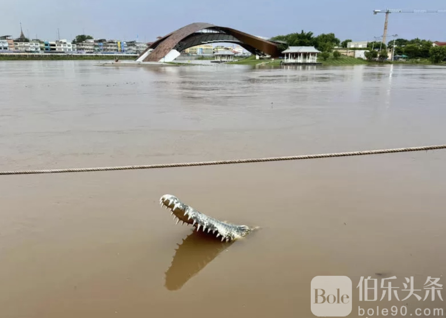 伯乐头条专讯:泰国多省连日遭遇季风暴雨侵袭,洪灾不断加剧,官方确认死亡人数已上升至7人,受灾民众超过26万。部分地区洪水高涨,连象征湄南河源头的鳄鱼雕塑都几乎被淹没,只剩张开的嘴巴露出水面,场景令人震撼。