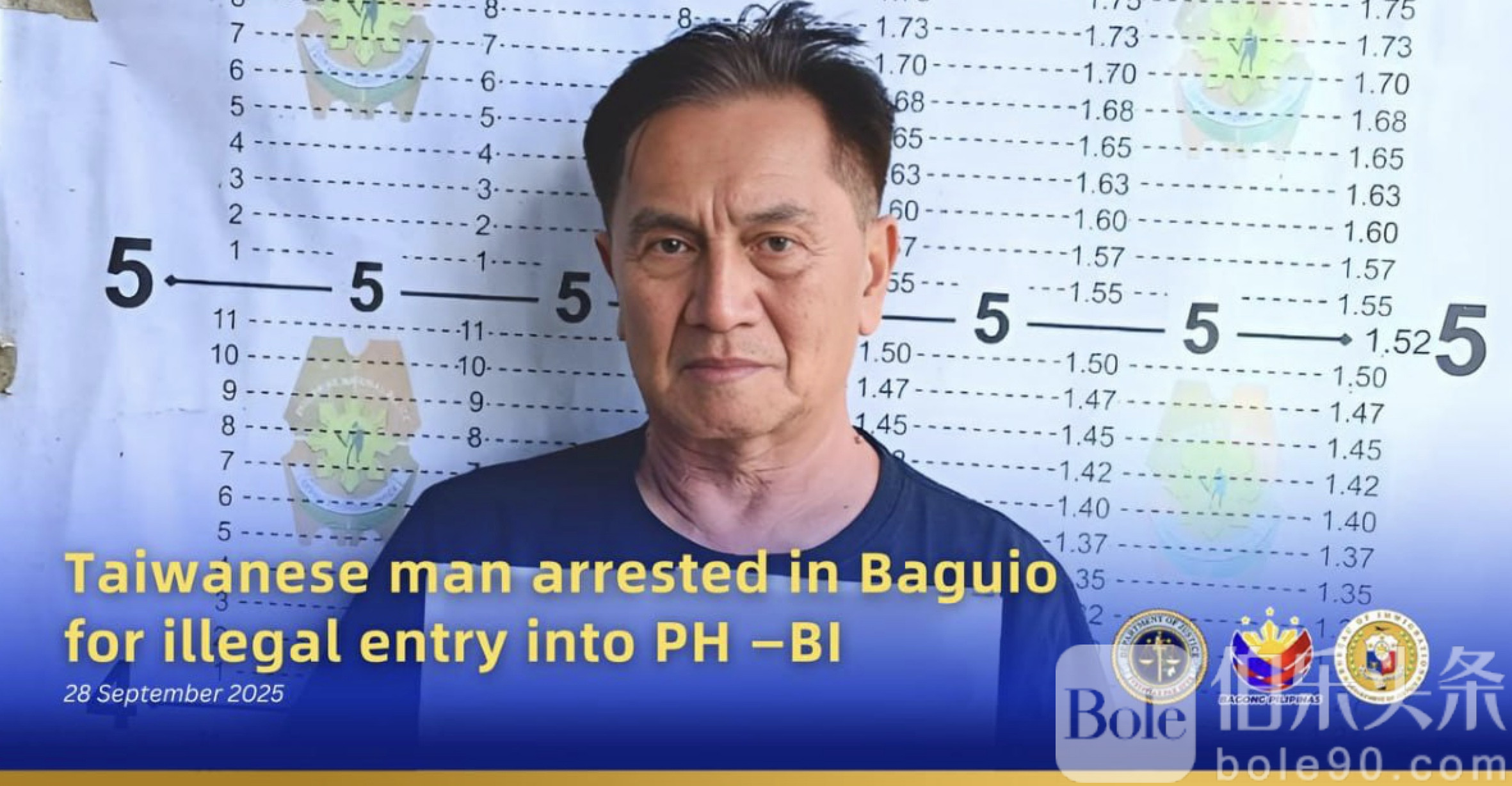 伯乐头条专讯:菲律宾移民局(BI)9月27日通报,一名69岁台籍男子因非法入境在碧瑶市被捕,案件引发社会关注。