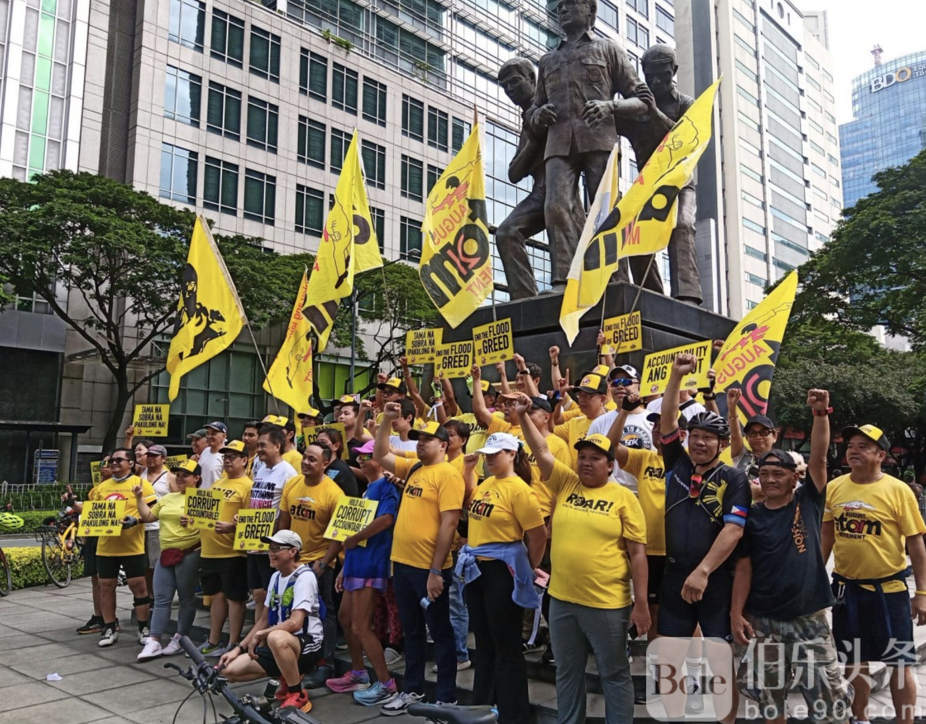 伯乐头条专讯:9月28日(周日)上午,菲律宾民间团体“8·21运动”(ATOM)在马卡蒂市发起反腐游行,继续谴责国内公共项目中的腐败现象。