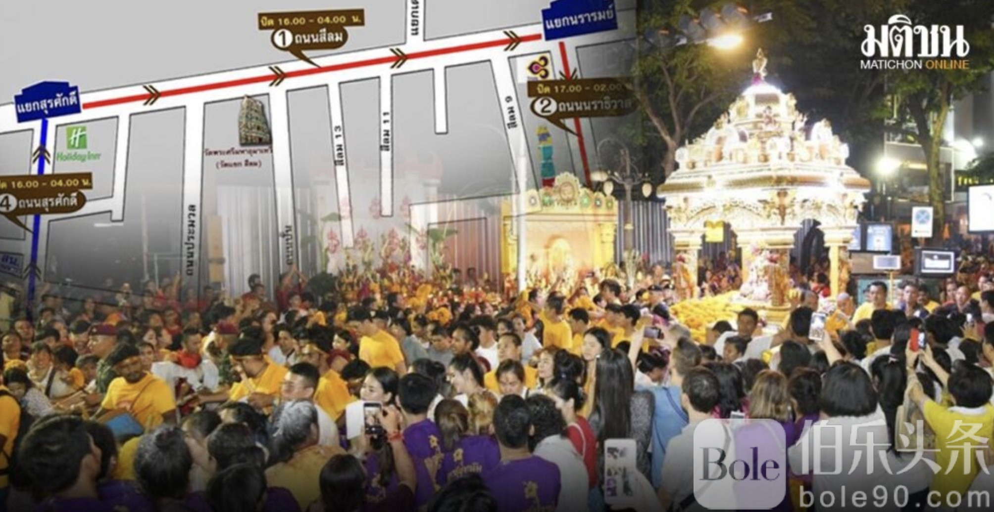 伯乐头条专讯:曼谷警方发布紧急交通公告,因“2025年九夜节(Navaratri)”游行活动将在Silom区Sri Maha Uma Devi寺(俗称Wat Khaek)举行,多条主要道路将于今日傍晚起封闭,预计持续至次日凌晨,提醒市民合理安排行程,避免陷入交通拥堵。