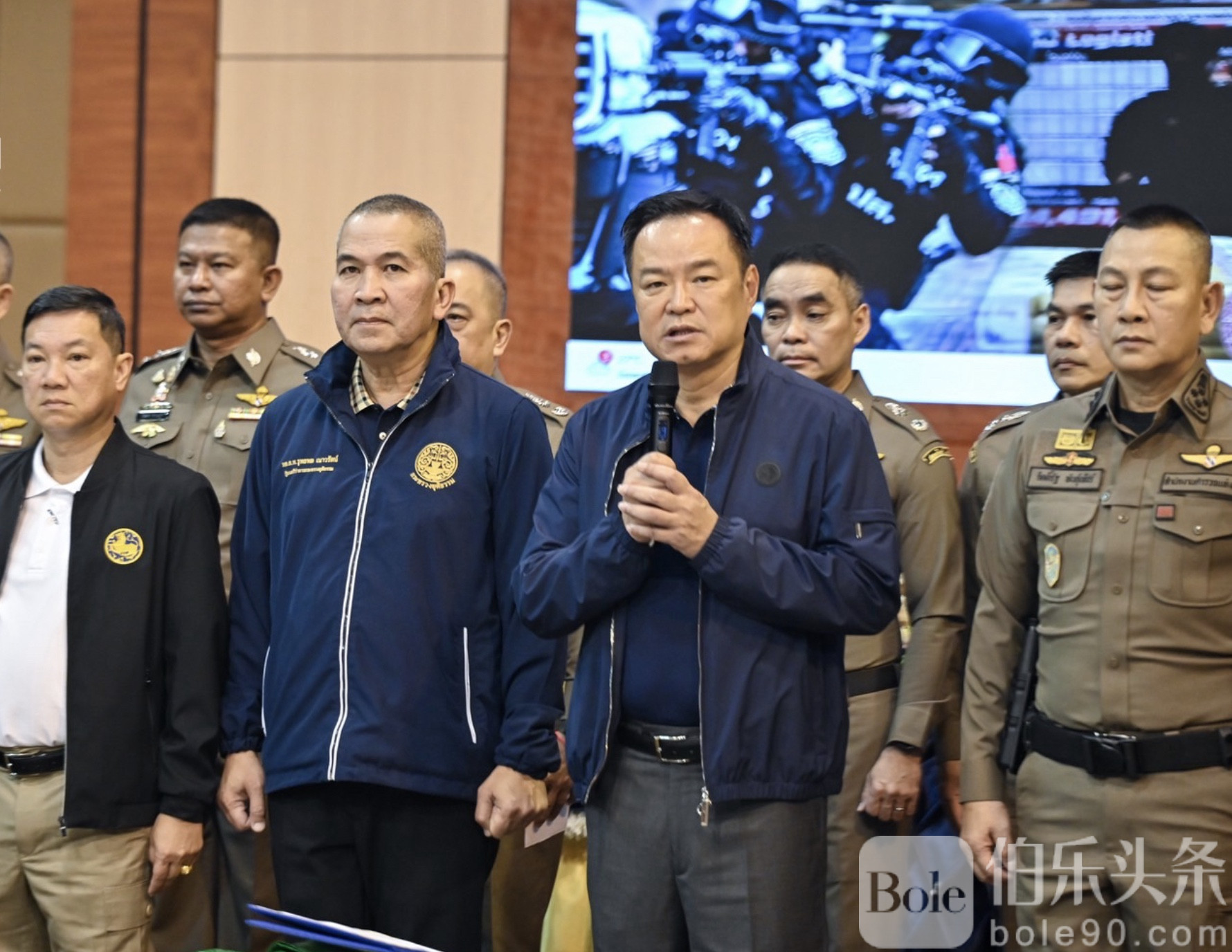 伯乐头条专讯:泰国总理兼内政部长阿努廷10月4日在禁毒局主持新闻发布会,公布近期大规模缉毒行动成果。内政部次长、国家警察总署署长及副署长、禁毒局局长、毒品管制委员会秘书长等多名官员出席会议。此次行动中,警方共捣毁9个主要贩毒集团,逮捕16名犯罪嫌疑人,缴获1825万枚摇头丸、1488公斤冰毒和29公斤K粉。