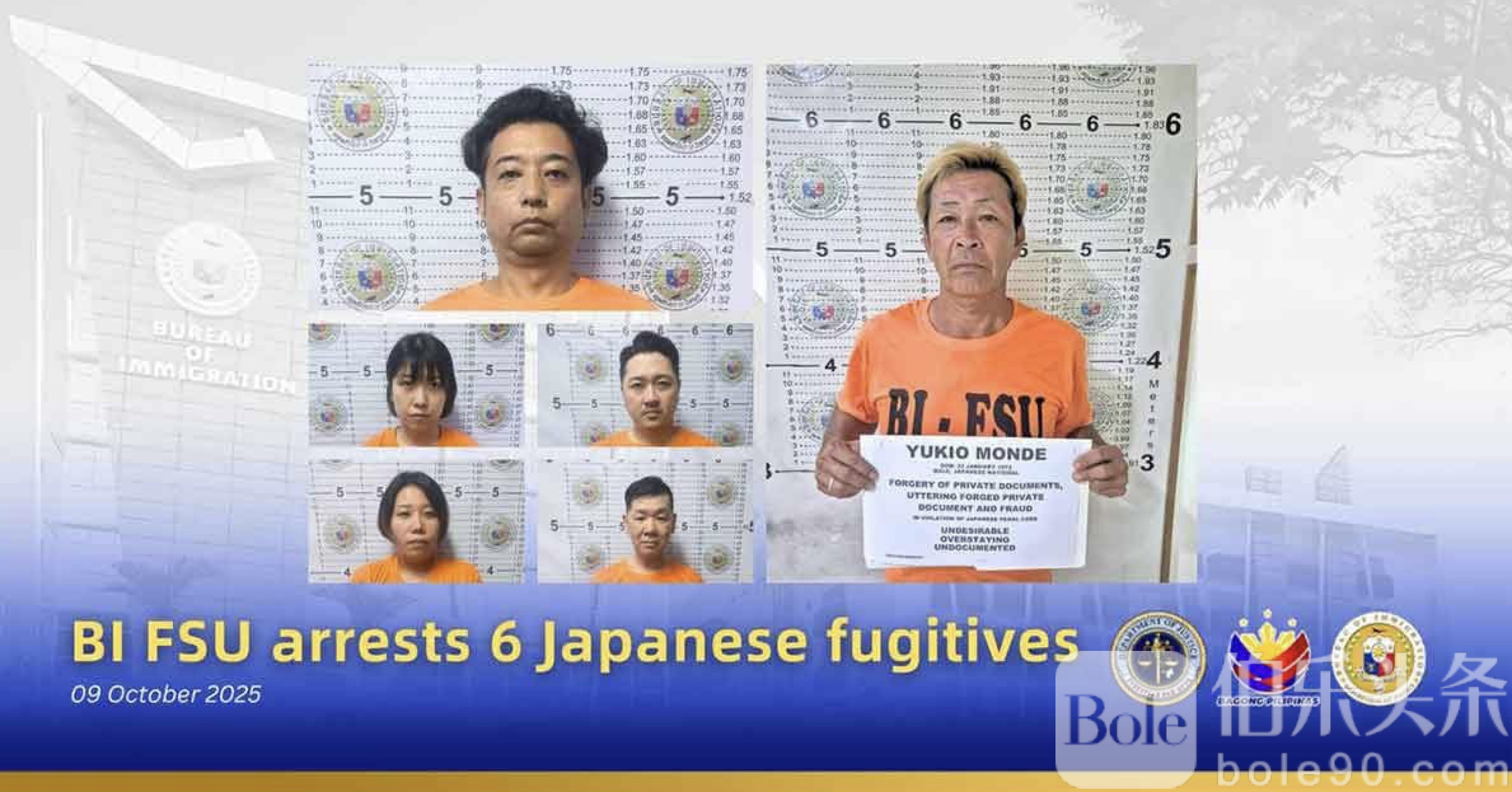 伯乐头条专讯:菲律宾移民局(BI)通缉行动小组于10月7日在布拉干省、奎松省卢塞纳市及坎德拉利亚市展开联合抓捕行动,成功拘捕6名日本通缉犯,其中5人涉嫌与臭名昭著的JP Dragon帮派有关。此次行动系总统费迪南德·“邦邦”·马科斯指示下进行,旨在确保在菲律宾潜逃的外国逃犯被抓获并遣返。