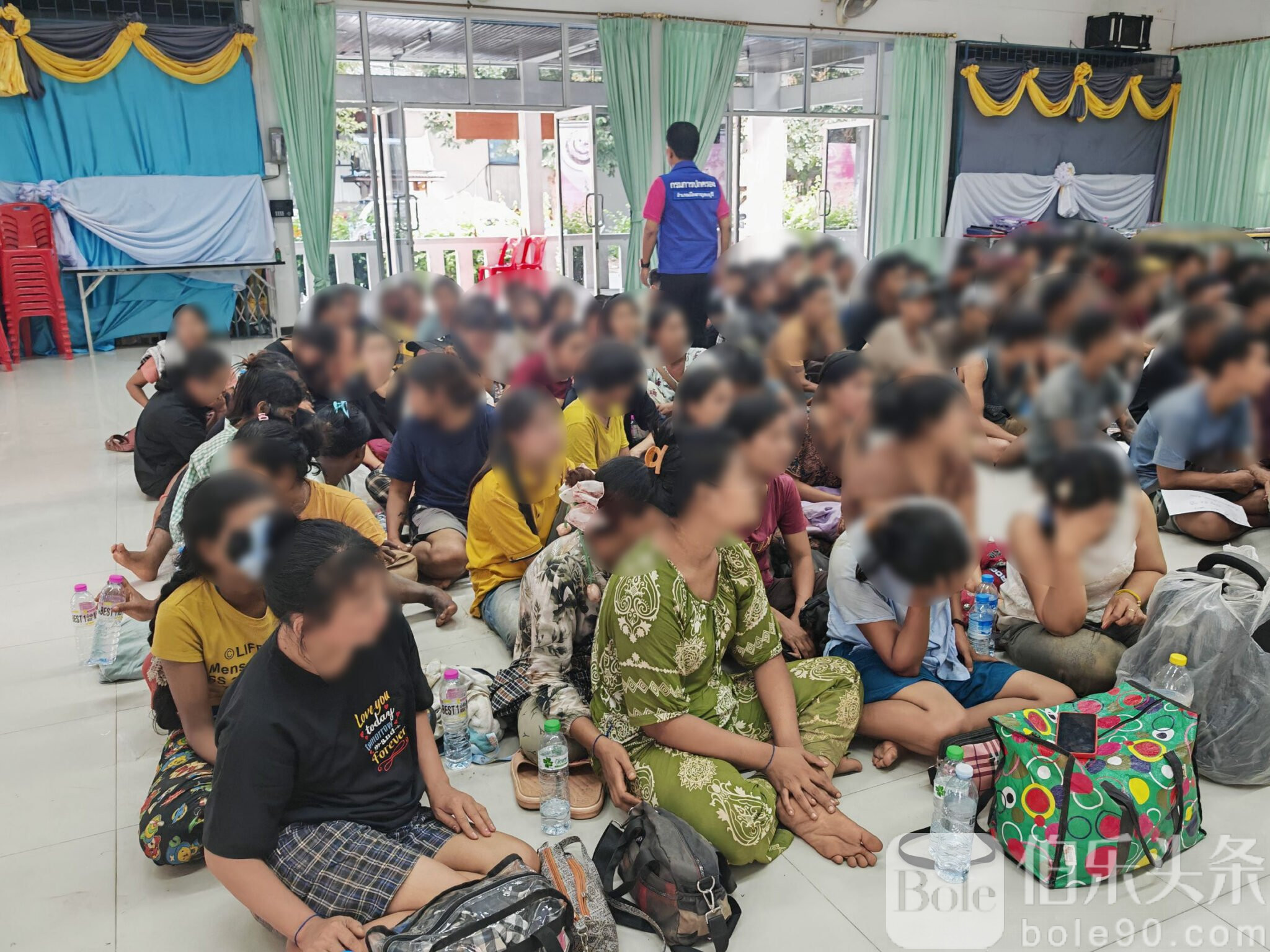 伯乐头条专讯:泰国警方11日清晨在北碧府(Kanchanaburi)查获一辆贴着“沙丁鱼罐头”标志的白色六轮货车,外观看似运送食品,但未悬挂车牌,引起警觉。高速公路警察随即拦截检查,震惊发现车厢内竟挤满108名非法入境的缅甸劳工,其中男性70人、女性38人,个个神情疲惫、坐立难安。