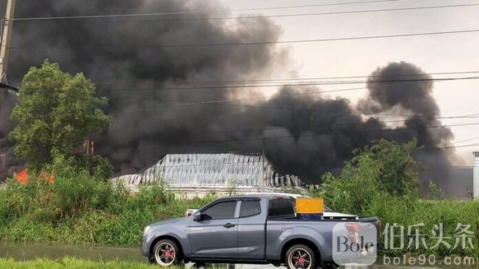伯乐头条专讯:10月13日下午,泰国巴吞他尼府孔卢昂区发生严重火灾,多处家电仓库被大火吞噬。目前火势仍未完全受控。