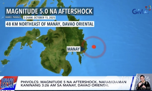 伯乐头条专讯:菲律宾南部再度传出强震!菲律宾火山暨地震研究所(PHIVOLCS)15日凌晨通报,达沃东方省(Davao Oriental)马奈(Manay)外海于凌晨3时26分发生5.0级地震,震源深度仅12公里,属构造型地震,震感强烈,沿海居民惊慌逃出家门。
