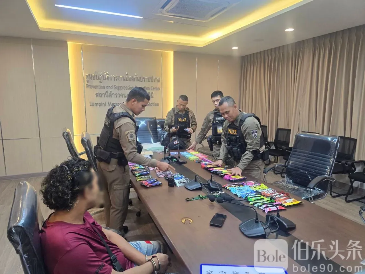 伯乐头条专讯:泰国警方在曼谷素坤逸路夜场重拳出击,一名32岁缅甸男子Zin Min Tun在骑摩托送货时被抓,涉嫌非法销售电子烟给外国客户。
