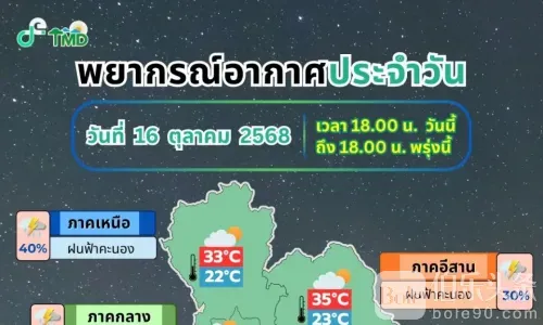 伯乐头条专讯:泰国气象局发布全国性暴雨警报,由于强烈东风和东南风持续影响,全国多地将迎来零星雷阵雨、局部强降雨及海面风浪加剧,尤其是南部沿海地区。官方提醒民众保持警惕,低洼及易涝地区需加强防范,同时船只及沿海社区应做好防风防浪准备。
