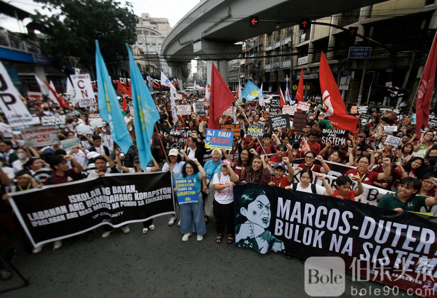 伯乐头条专讯:10月17日,来自马尼拉大都会多所大学和学院的学生在Mendiola桥集结,举行大规模走出校园的抗议活动,向政府腐败问题发出强烈声音。