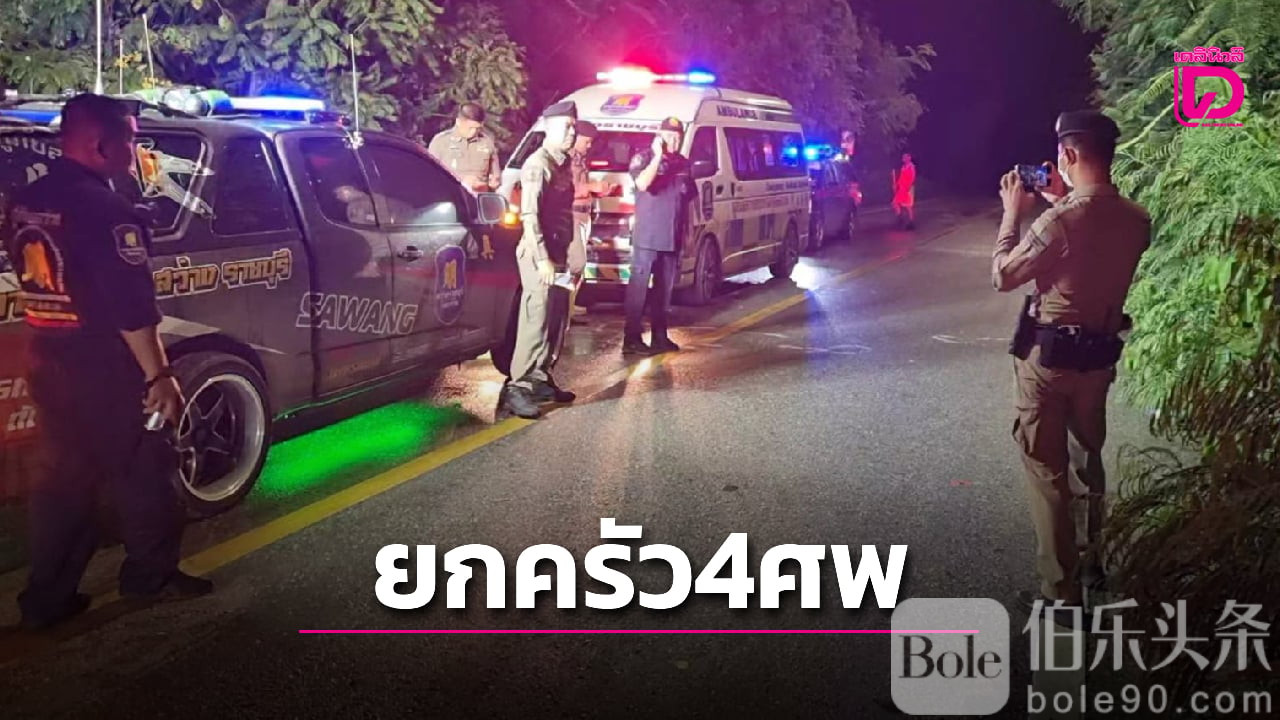 警方指出,事故发生于晚上7点10分,地点在邦拍县敦卡乡的敦卡-敦亚公路。现场皮卡车头全毁,挡风玻璃上卡着一具男性遗体,车斗内还有一名约3岁的女童尸体,另有两名女性遗体倒在不远处。经初步确认,4名死者为一家人,为在泰务工的老挝籍劳工。