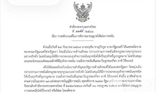 日发布的第2253/2568号命令,并明令“停止一切此类游戏许可”。