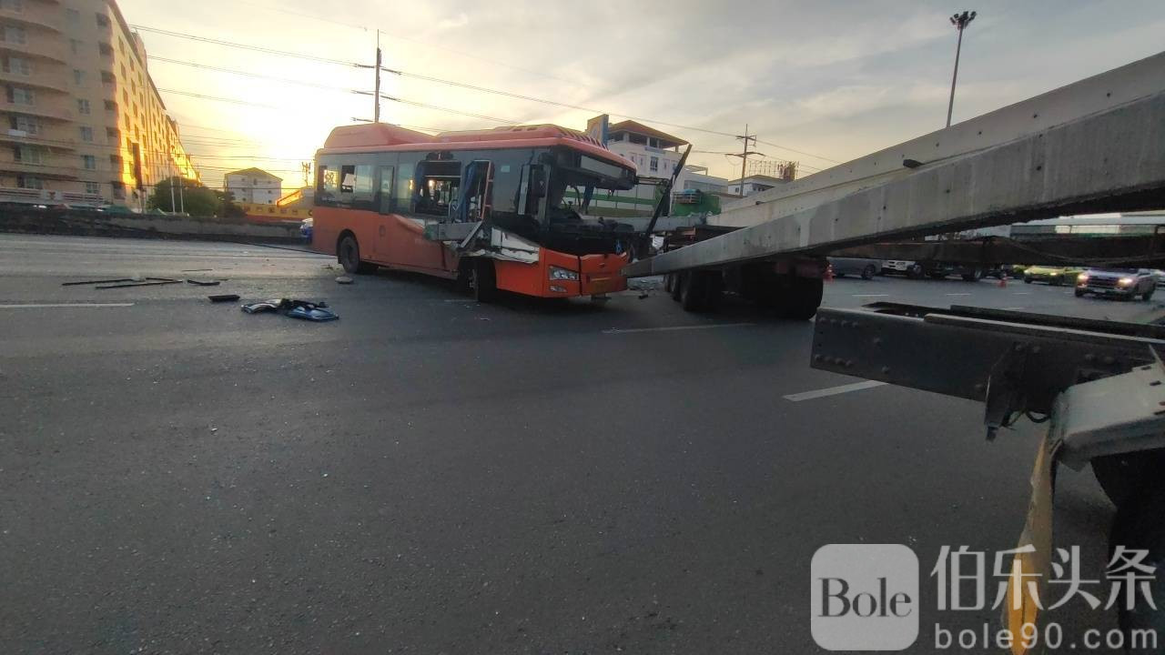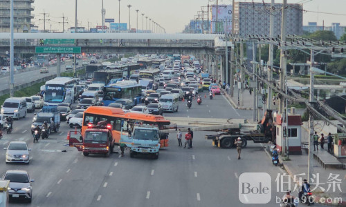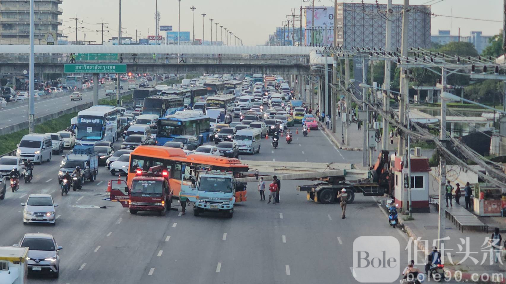 凌晨惊魂!泰国公交被贯穿交通严重受阻