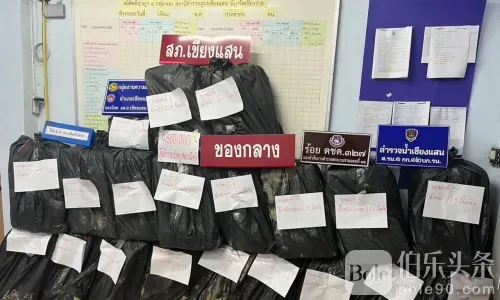 伯乐头条专讯:泰北清莱再破巨量毒品走私案!警方在清盛县边境路段设伏截获一辆可疑皮卡车,当场查获毒品“冰毒片”(Yaba)约480万粒,重达536公斤,估值数亿泰铢。司机见势不妙跳入湄公河逃逸,目前仍在追捕中。