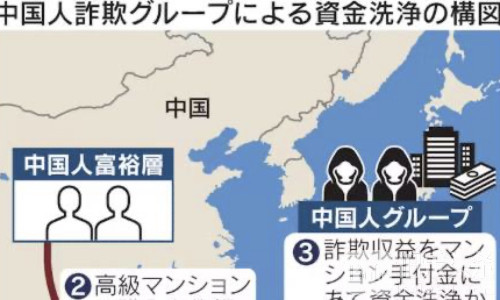伯乐头条专讯:日本警视厅近日宣布破获一起特大跨国洗钱案,三名中国籍嫌疑人通过冒充警察实施电话诈骗,从约500名日本老年人手中骗取50亿日元,随后将赃款用于支付中国买家在东京港区、中央区等高档公寓的首付款。