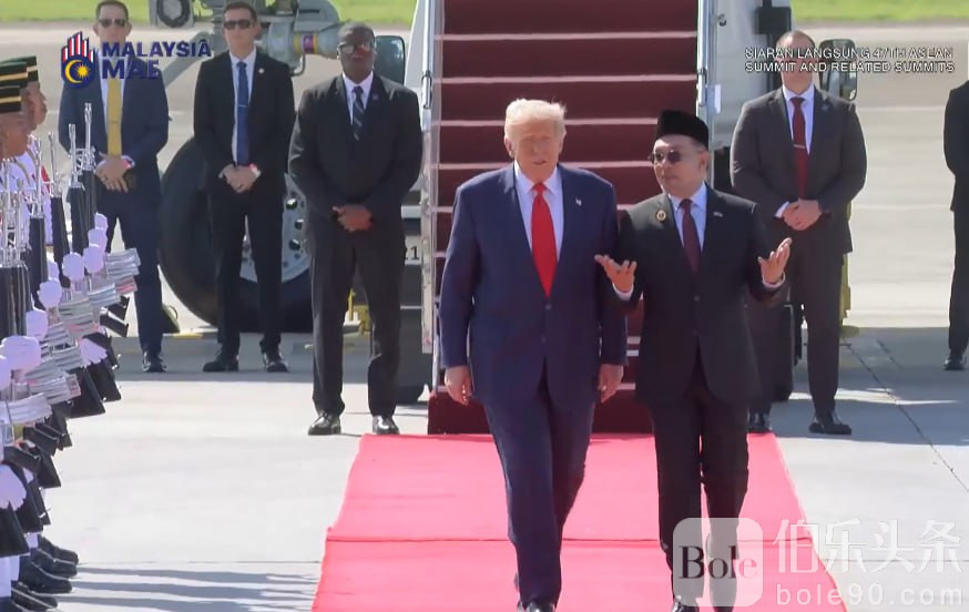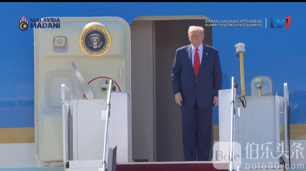 伯乐头条专讯:10月26日上午10点,美国总统特朗普专机降落马来西亚吉隆坡国际机场。此行,特朗普将以核心见证人身份,出席柬埔寨与泰国和平协议的签署仪式,并参加第47届东盟峰会。