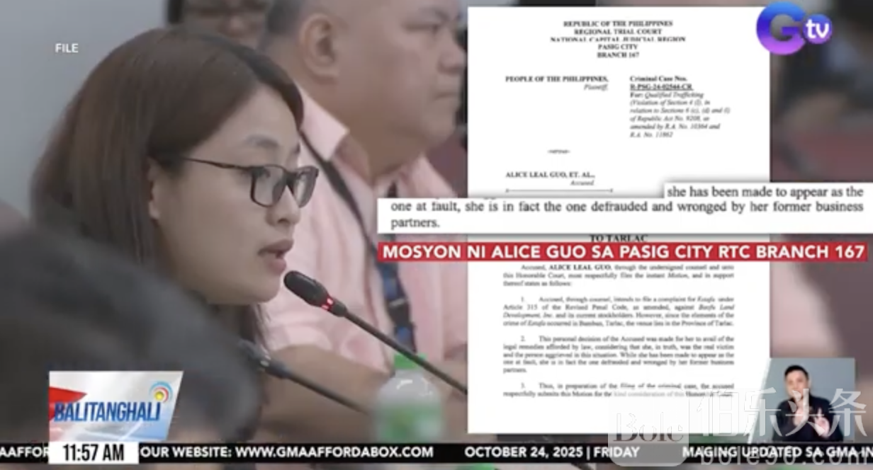 伯乐头条专讯:菲律宾塔拉克前市长郭华萍(Alice Guo)案出现重大反转!她在狱中透过律师向法院申请外出,计划亲赴塔拉克检察署,对前商业伙伴及POGO园区开发商提出诈骗(estafa)指控,声称自己才是“被陷害的那一方”。