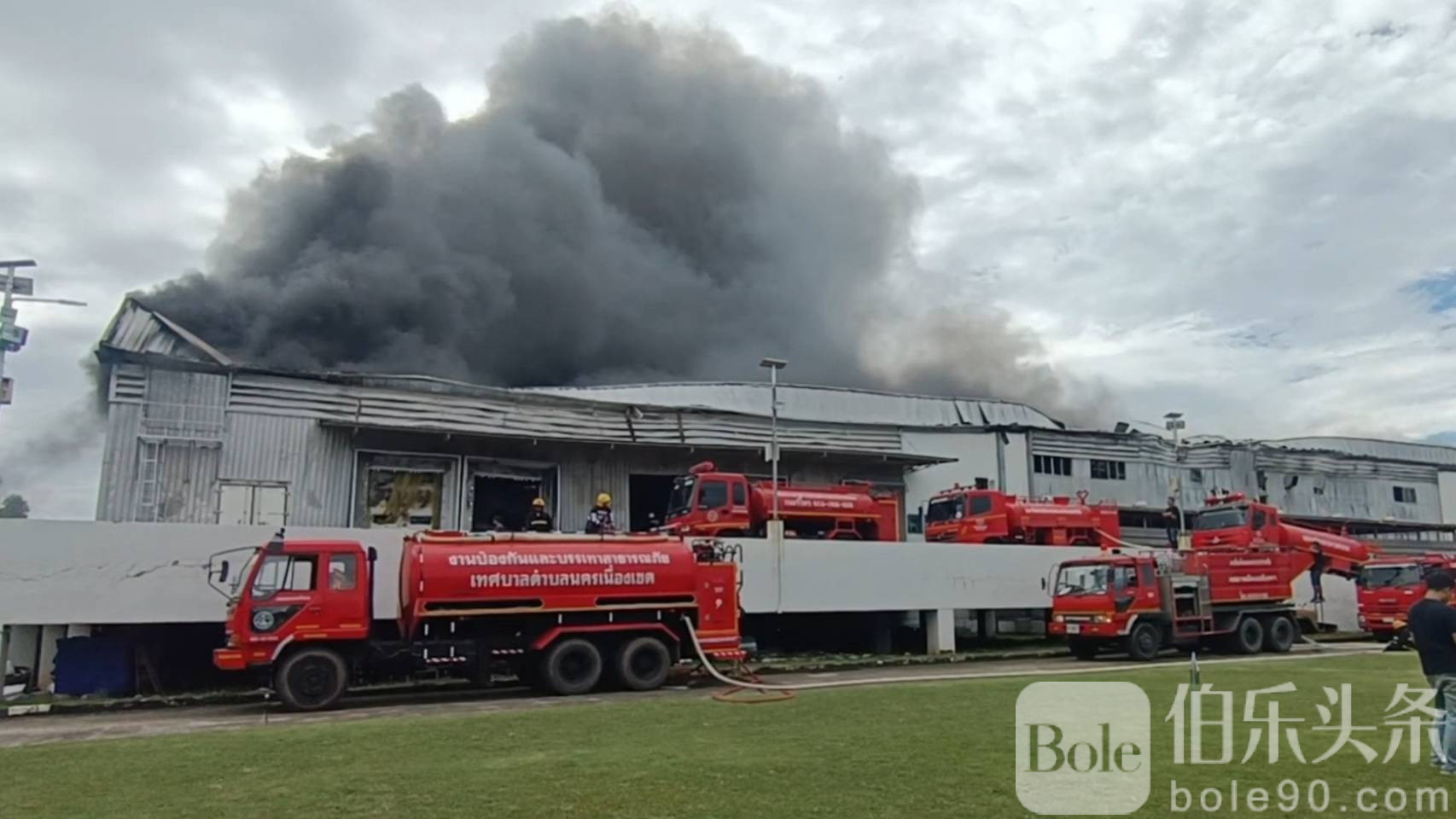 伯乐头条专讯:10月29日,泰国春蓬府一处冷冻动物饲料加工厂发生火灾,火势持续超过2小时,整个仓库几乎被烧毁。起火原因疑似操作燃气设备时失控,所幸无人伤亡,仅有部分员工出现烟雾吸入不适。