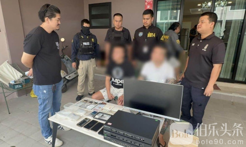 伯乐头条专讯:泰国芭堤雅警方突袭豪宅,抓获两名台湾男子,现场缴获氯胺酮、笑气及相关派对用具。