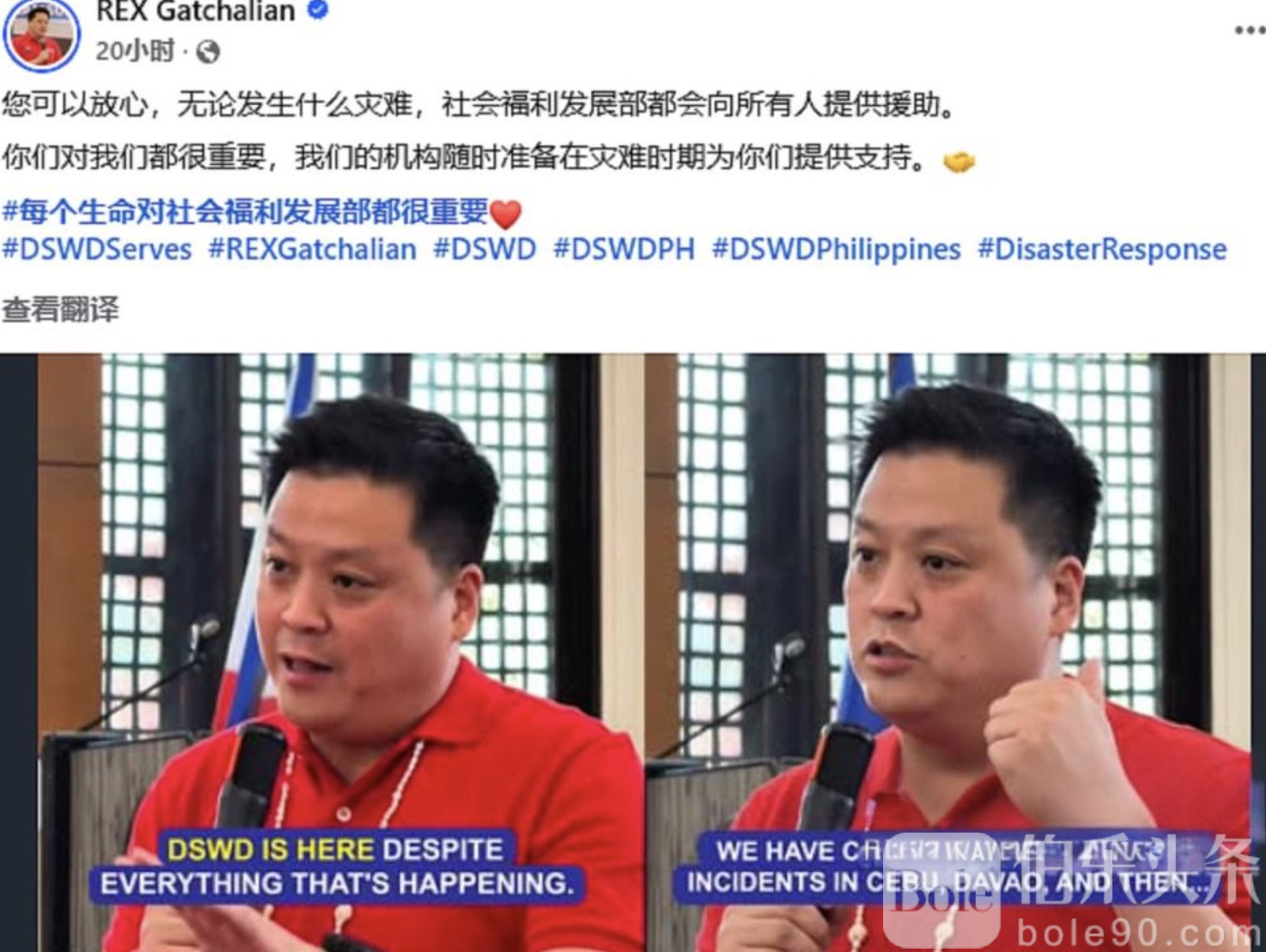 伯乐头条专讯:菲律宾社会福利与发展部(DSWD)部长张侨伦(Rex Gatchalian)10月29日通过个人社交媒体发文强调,无论发生何种灾难,政府都将向所有人提供援助,确保没有任何一个菲律宾民众被忽视或遗忘。