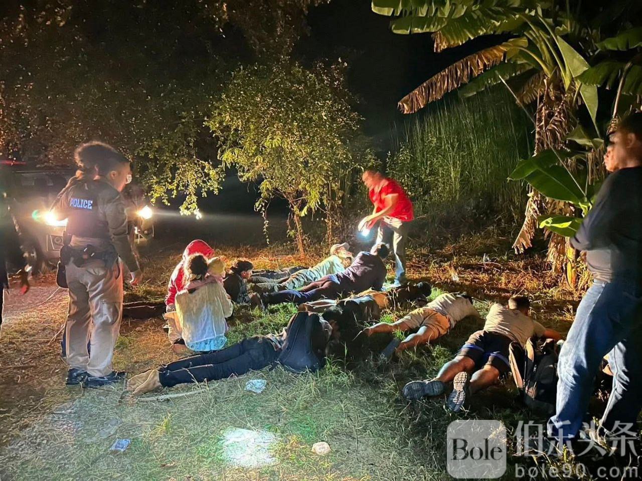 伯乐头条专讯:2025年10月30日上午,泰国帕塔纳府科科镇村民举报,村庄附近一片森林中藏匿着大量“外来客”。当地警方迅速出动,在林间小路抓获五名中国公民和十五名缅甸公民。据了解,这些人未经许可,翻越缅甸边境进入泰国,属于典型的非法跨境行为。