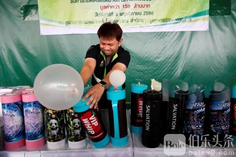 伯乐头条专讯:泰国曼谷港口在例行海关检查中查获一批从中国走私的笑气,共计2600个钢瓶,总市值约4400万泰铢。此次走私的笑气未在报关单上申报,涉嫌违反泰国海关法规,引发警方展开重大调查。每个钢瓶重约5公斤,可填充约160个气球,若在黑市出售,每个气球售价可达100泰铢。