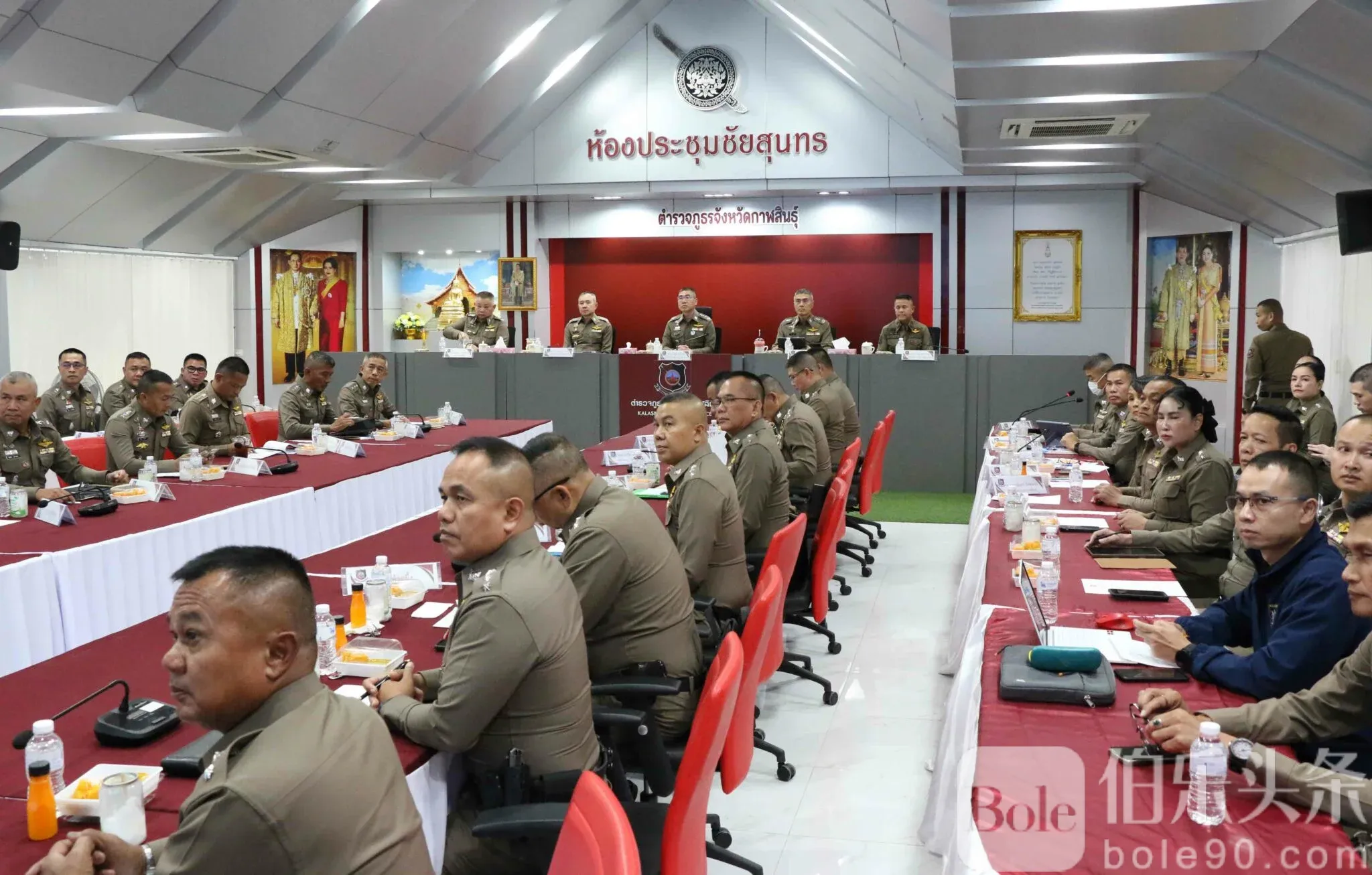 伯乐头条专讯:119日,泰国警察总督部指挥官พล...สันติ ชัยนิรามัย亲赴甘拉信府,对当地警察系统进行全面督导,并发布最新行动指令,要求全省各警局全面扫描,加速打击毒品、网络诈骗及各类犯罪活动。