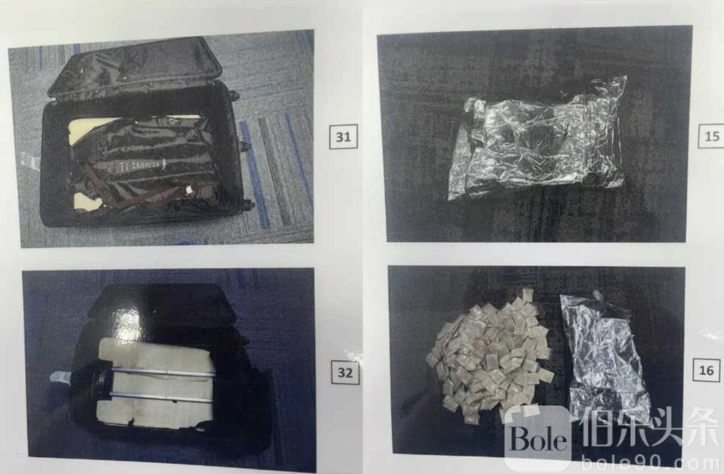 在X光扫描后,执法人员在其行李箱内发现多个以铝箔包裹的半透明塑料袋,袋内装有白色粉末状物质。经化验证实,这些白粉为毒品克他命,总重约6.88公斤,估计市值高达34万4000令吉。