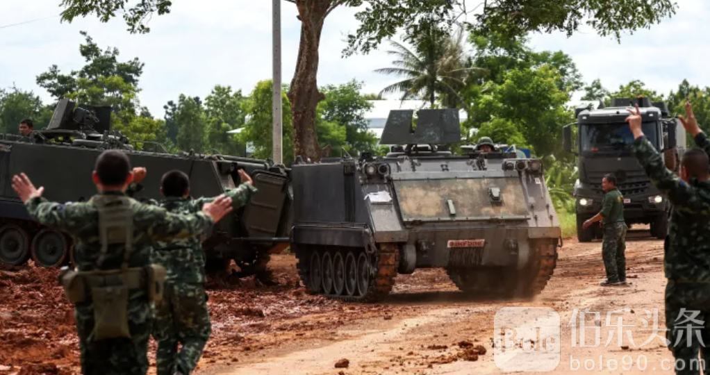 伯乐头条专讯:据多方网友及现场照片反馈,泰国军方坦克及装甲车辆已开始驶入柬埔寨柏威夏省边境地区,引发两国边境局势紧张。消息显示,这些部队隶属于泰国陆军第二军区,旨在对近期柬泰边境冲突及地雷威胁进行防御性部署。