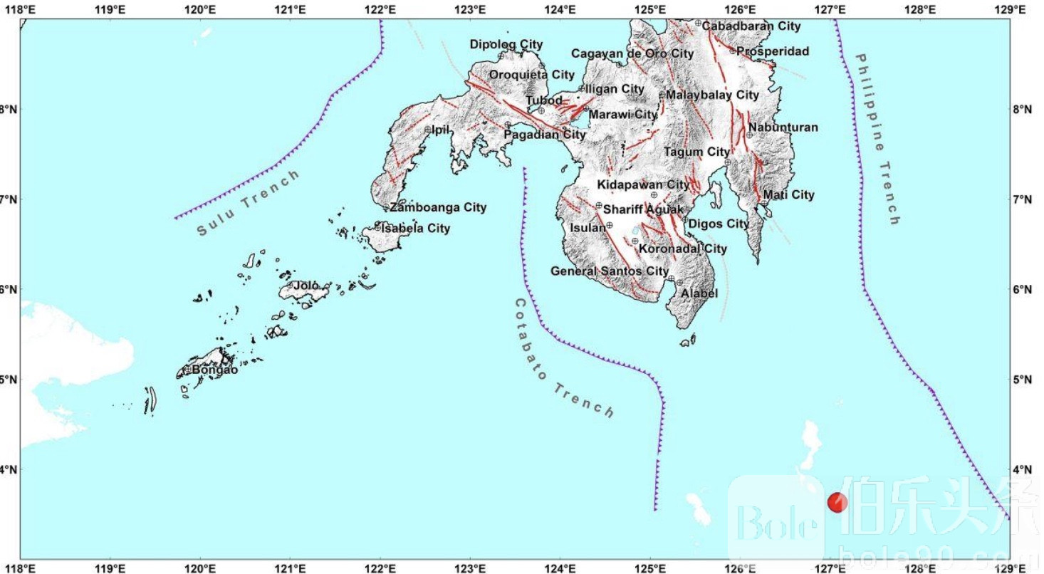 伯乐头条专讯:菲律宾火山与地震研究所(PHIVOLCS)于11月15日发布消息称,当天下午1点33分,在达沃 Occidental 附近海域发生一起5.7级地震。地震震中位于北纬3.62°、东经127.08°,距离巴鲁特岛以南270公里,属于构造地震,震源深度约为10公里。