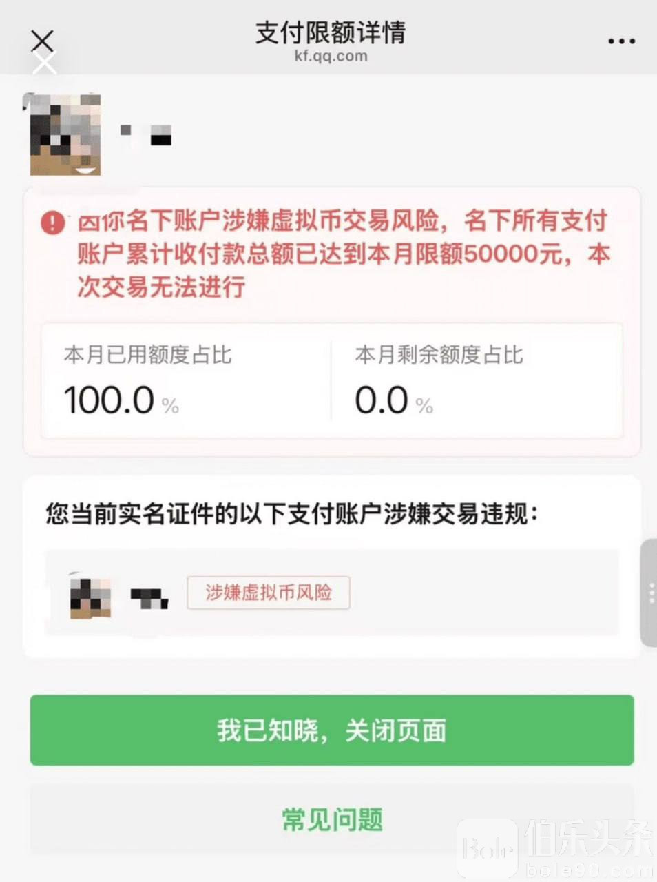 伯乐头条专讯:自即日起,微信正式进一步收紧对虚拟货币交易的管理。根据官方披露的规则,一旦大数据系统判定用户参与虚拟货币相关交易,该用户每月通过微信进行的转账、群收款及红包金额将被限制在 5 万人民币以内。若超出额度,相关交易将被暂时禁止,直至系统重新评估。
