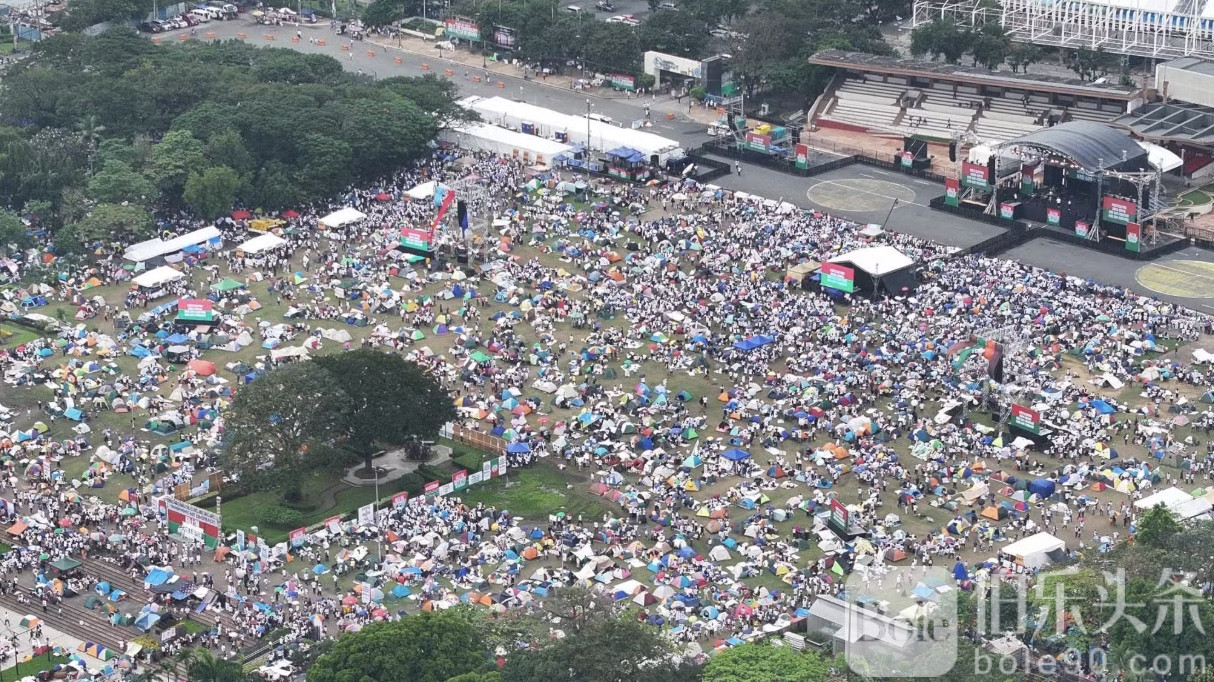 伯乐头条专讯:菲律宾马尼拉——宗教团体基督堂教会(Iglesia Ni Cristo, INC)在马尼拉基里诺大看台举行的三天反腐大集会进入第二天,截至11月17日早上10点,现场已有约18万人参与。部分成员选择在现场过夜搭帐篷,以继续观摩集会活动。
