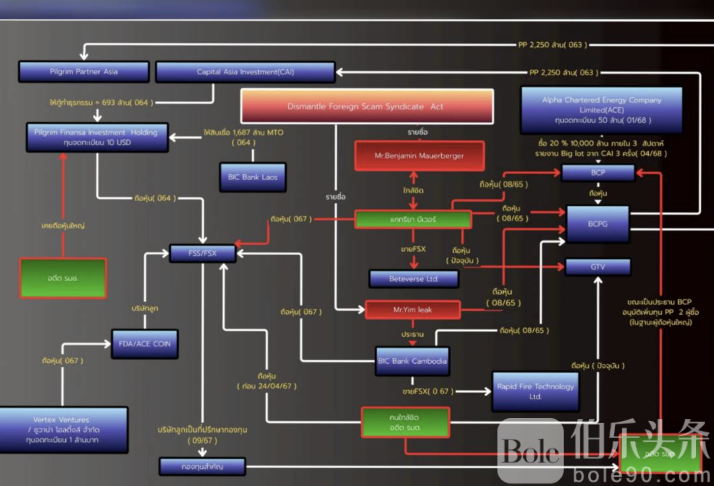 民主党发言人称,经党内工作组初步调查,发现涉及人员包括柬埔寨商人吉姆·黎(Jim Liak)、企业家兼游说者本杰明·毛尔伯格(Benjamin Mauerberger),以及关联的公司与金融机构,涵盖泰国与周边国家银行,如柬埔寨B.I.C.银行和老挝B.I.C.银行。涉嫌行为包括通过注册资本仅330泰铢的公司收购大型企业、规避法律限制让外国人持股超过泰国法定49%上限,以及与泰国大型能源公司存在潜在利益联系。