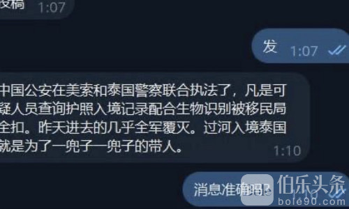 伯乐头条专讯:泰缅边境美索(Mae Sot)17日起突然进入“铁桶式”执法状态,中国公安与泰国警方在当地启动联合行动,对所有可疑入境者实施护照核查与生物识别比对,凡是来源不明、活动反常或记录可疑者,全部被移民局当场扣留。
