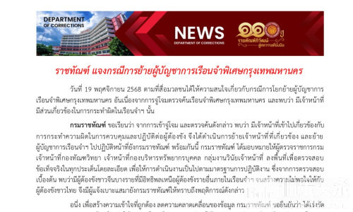 惩教署表示,涉事工作人员已被调离岗位,监狱长亦被立即召回总部办公。署方已派出监察官、纪律部门、人事部门等多组人员深入监狱展开全面调查。泰国惩教署强调,将依照“透明、公正”的原则进行处理,并按照纪律程序追责涉案人员,如查实违规,将严肃问责,避免监狱系统沦为腐败温床。
