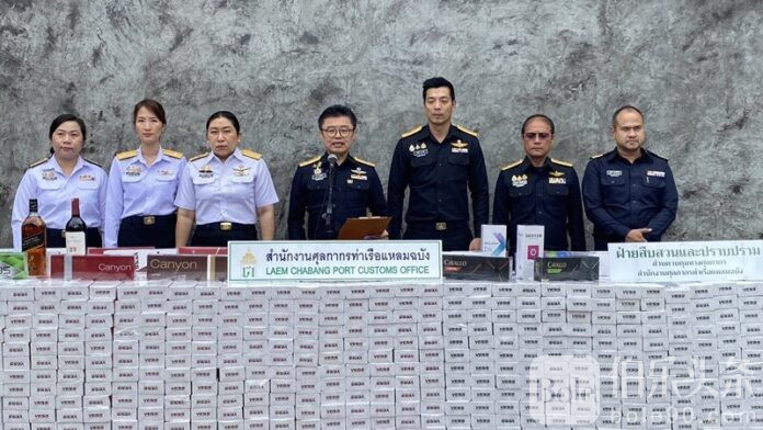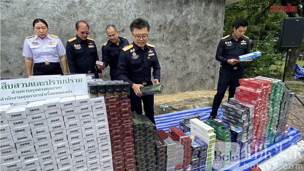 伯乐头条专讯:泰国海关在拉姆昌布港口成功截获一批走私烟酒,总价值近500万泰铢。这批走私物品通过国内邮政寄送至沙美拉查邮政中心,涉及“外国香烟、泰国香烟及进口烈酒”,共计813件邮包。