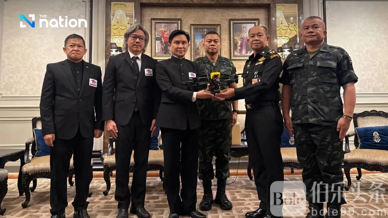 伯乐头条专讯:泰国华裔民族基金会“卫土者基金会”近日向泰国第二区军区捐赠了100架国产无人机,总价值约1900万泰铢,用于加强泰柬边境安全防卫。捐赠仪式在泰国皇家陆军总部举行,由第二区军区司令威拉育·拉西普中将接收,无人机捐赠过程还由前第二区军区司令布恩辛·帕德克朗见证。基金会会长帕恩特普·普阿蓬潘亲自向威拉育中将递交无人机。