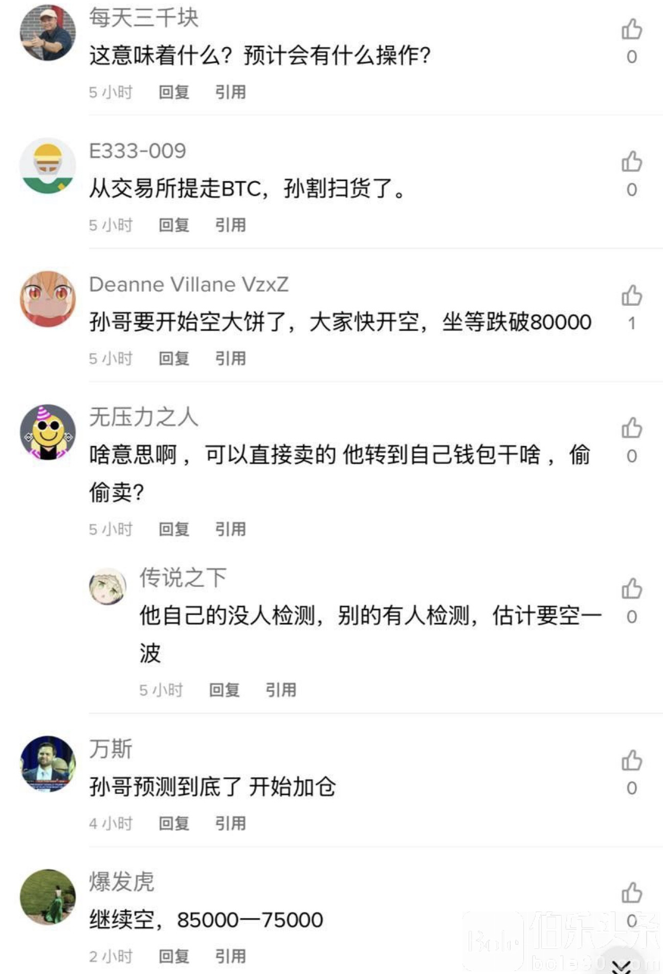 部分分析认为,将巨额 BTC 从托管账户转入个人钱包,通常代表持有人准备进行大规模操作,无论是拉盘还是砸盘,都足以撼动市场走势。更有群体担忧,若孙宇晨开始“扫货”或“清仓”,现有多头与空头都可能瞬间被打爆。