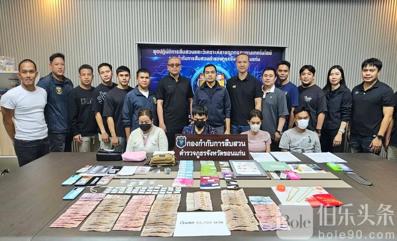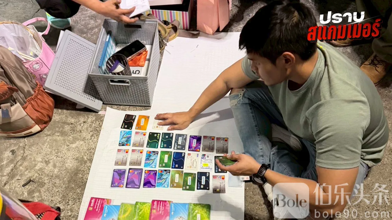 伯乐头条专讯:泰国孔敬府警方突袭一处被称为“马仔农场”的窝点,成功抓捕四名涉案嫌疑人,查获大批银行账户与提款卡,揭露其为电诈集团跑账、提取赃款的地下链条。泰国孔敬府警方根据政府及国家警察总署的反科技犯罪指令展开行动,孔敬府警察调查科与科技犯罪分析小组联合行动,突击抓捕37岁的苏拉蓬、其32岁的女友纳塔瓦恩,以及27岁的萨维特丽和32岁的素里亚。
