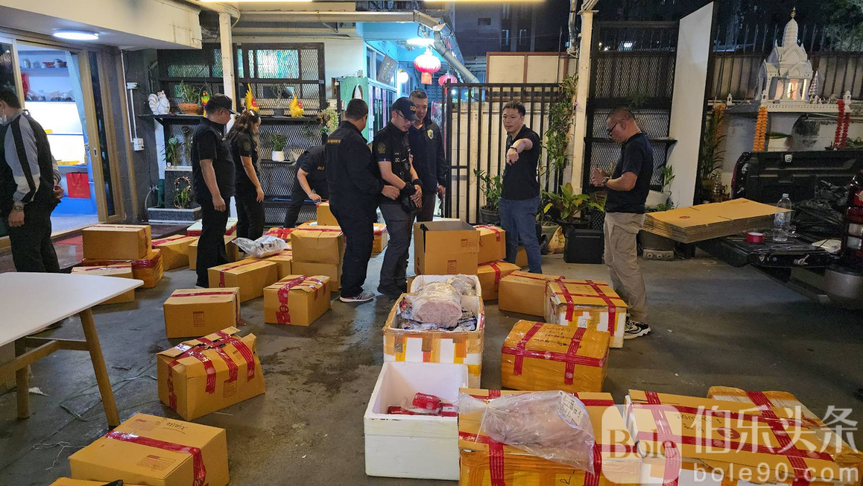 伯乐头条专讯:泰国曼谷警方在联合行动中成功瓦解一条非法走私动物制品链条,查获超过622公斤来源不明的冻肉,并逮捕一名49岁中国籍男子。涉案物品估值逾100万泰铢。