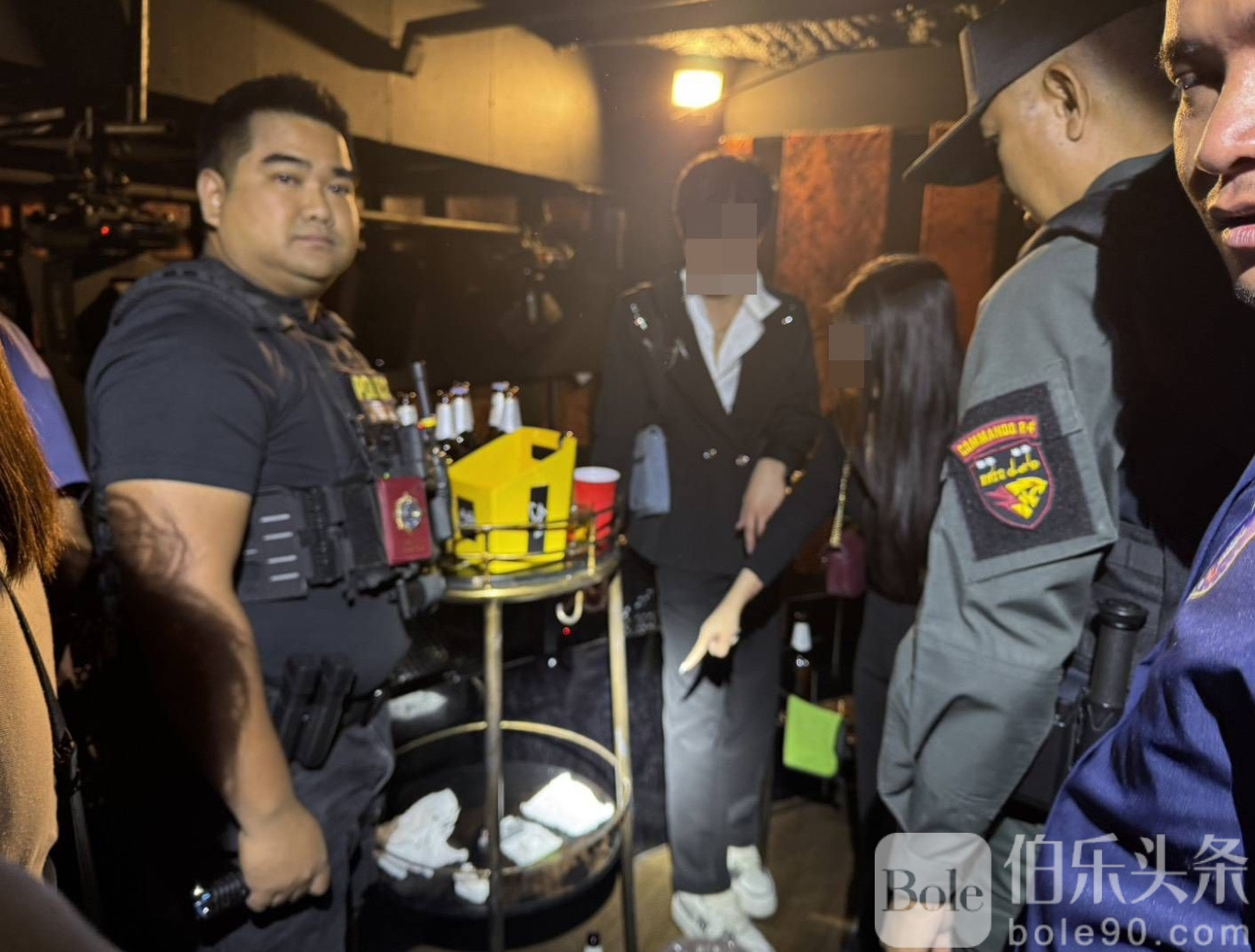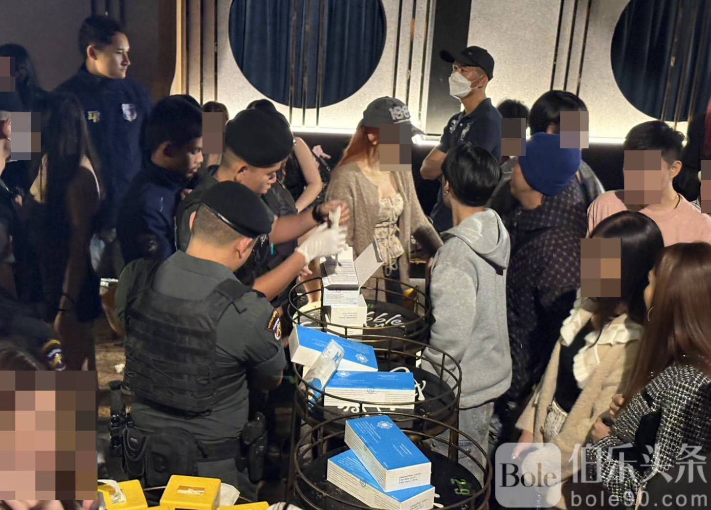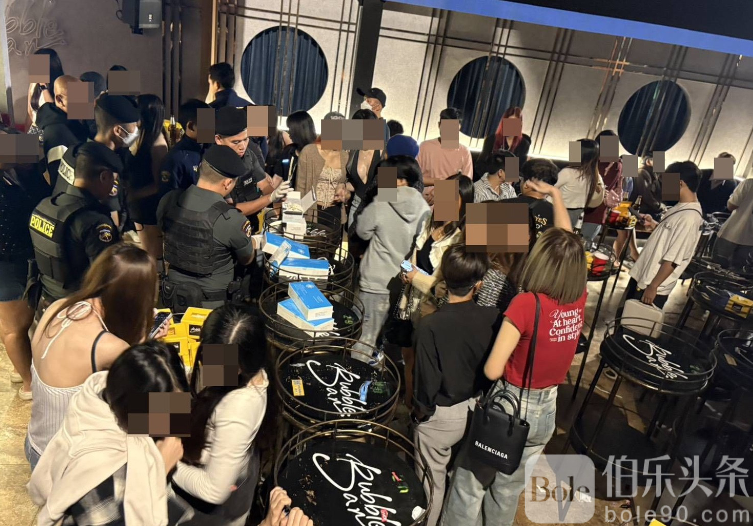 伯乐头条专讯:泰国孔敬警方于11月29日凌晨展开联合突击行动,查封当地两家知名夜店——“Bubble Bar”与“Wine Bla Bar”,成功抓获23名涉毒男女游客,并缴获包括K粉、冰毒与摇头丸在内的毒品。