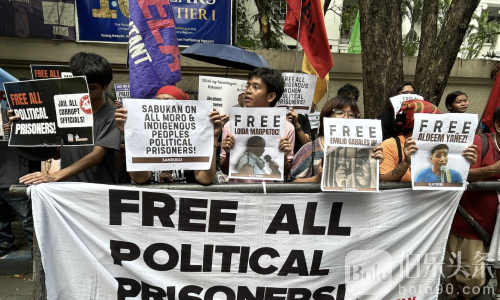 伯乐头条专讯:菲律宾两大人权组织——“菲律宾人权联盟”(Karapatan)与“反拘押及逮捕前囚者协会”(SELDA),3日早上在司法部大楼前发动抗议,要求政府立即释放全国 696 名政治犯,并严查涉嫌贪腐的官员,场面引发社会关注。