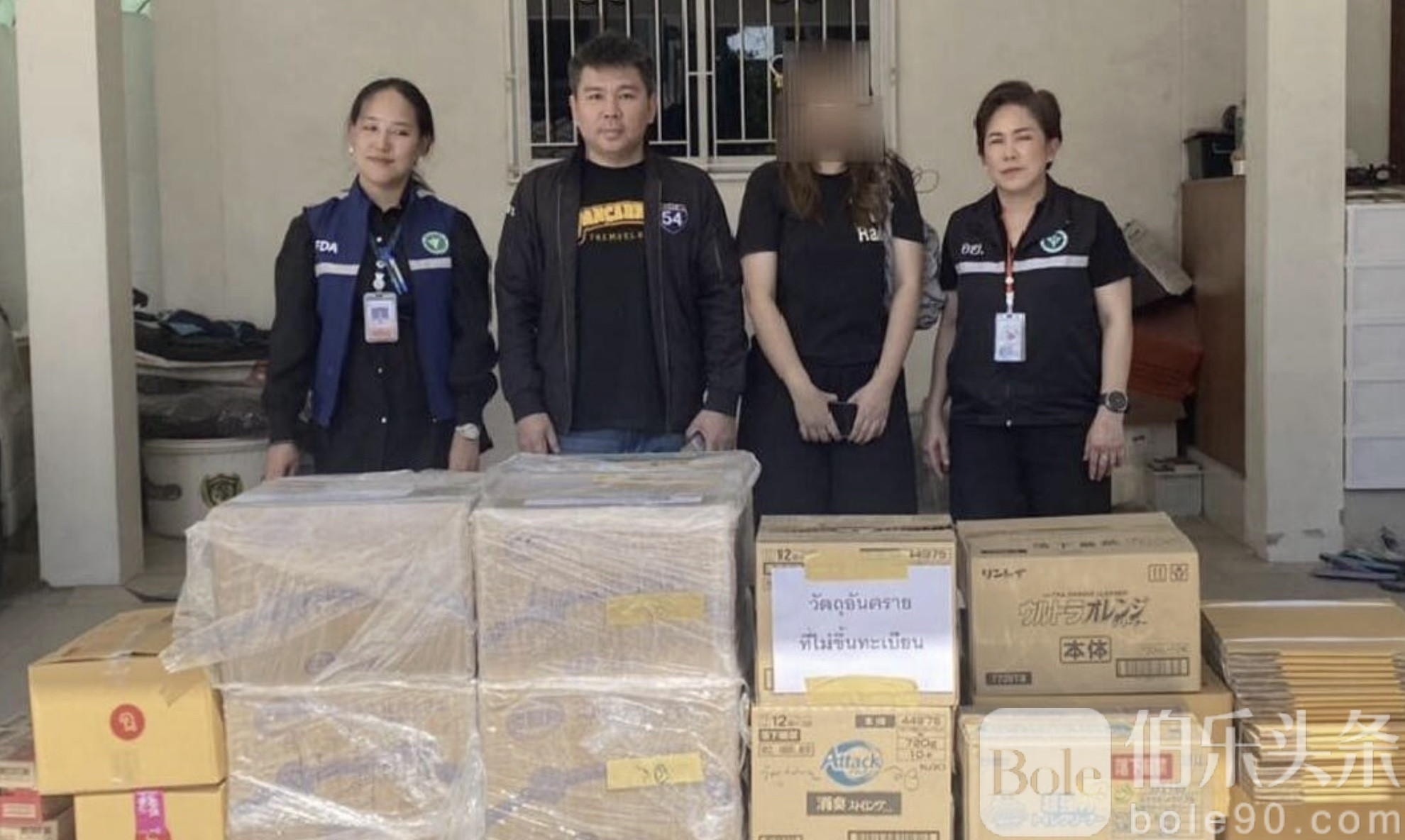 伯乐头条专讯:泰国警方联手食品药品监督机构突袭曼谷一处民宅仓库,现场查获大量未经许可、来源可疑、包装为日文的假药、化妆品与清洁用品,数量惊人,涉案的40岁女子当场被捕。