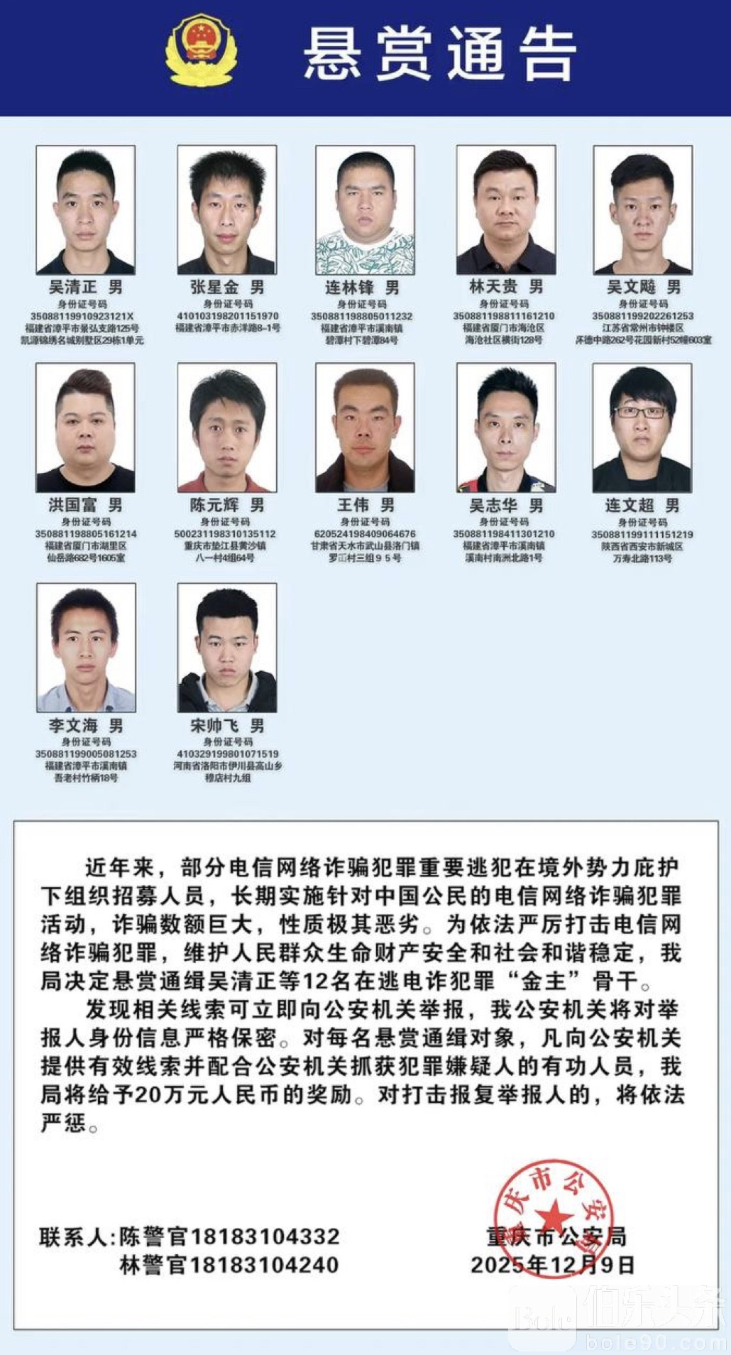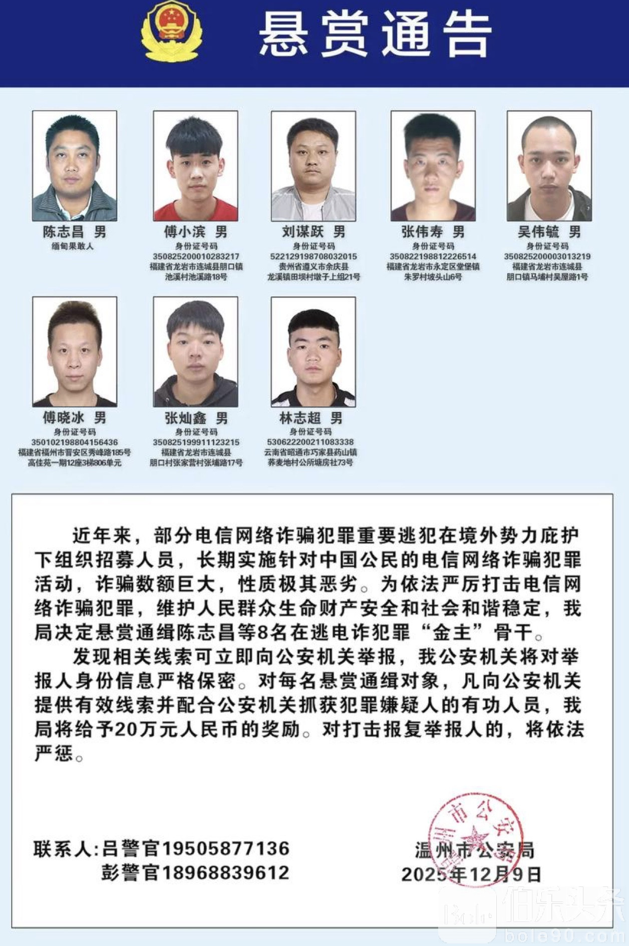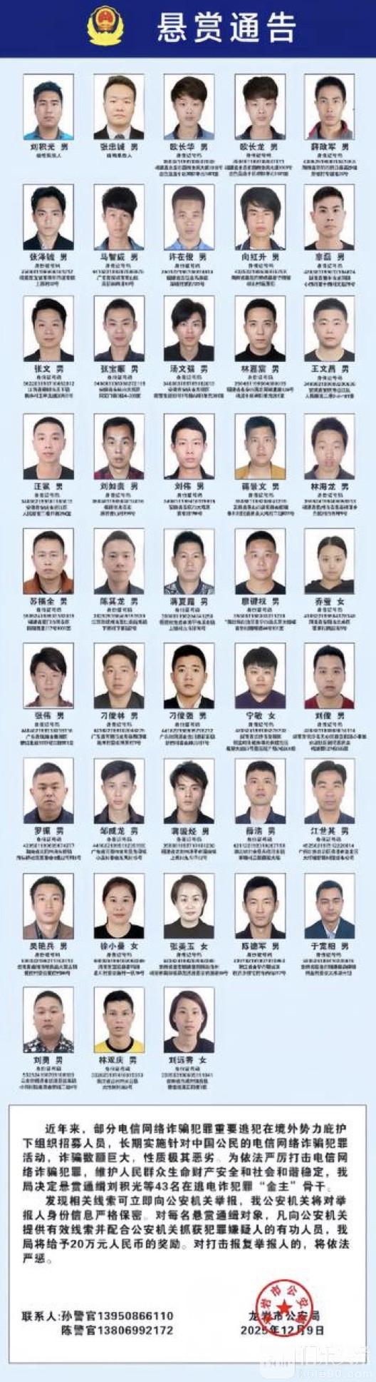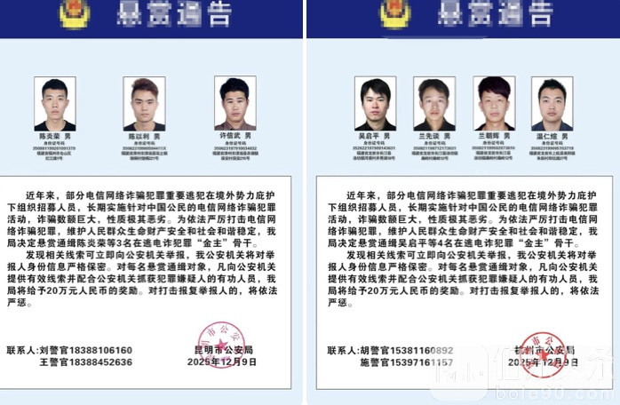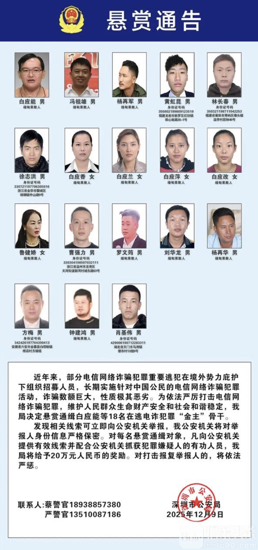 伯乐头条专讯:中国公安部近日发布最新通缉令,一口气公开通缉100名涉跨境电信网络诈骗在逃人员——这批人被指是各大电诈园区的“金主级”人物,有的甚至长期坐镇幕后操盘,堪称跨境电诈链条中的关键枢纽。