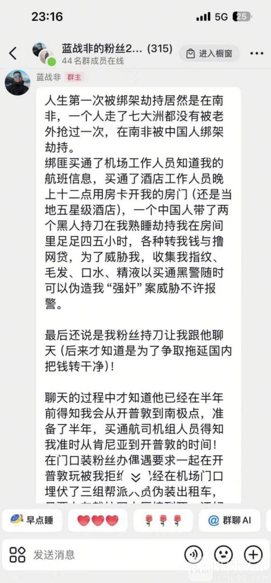 2025年12月8日深夜,南非开普敦的一家五星级酒店里,蓝战非正躺在床上,准备第二天出发去南极。他怎么都想不到,真正的噩梦会在这天零点准时开始。