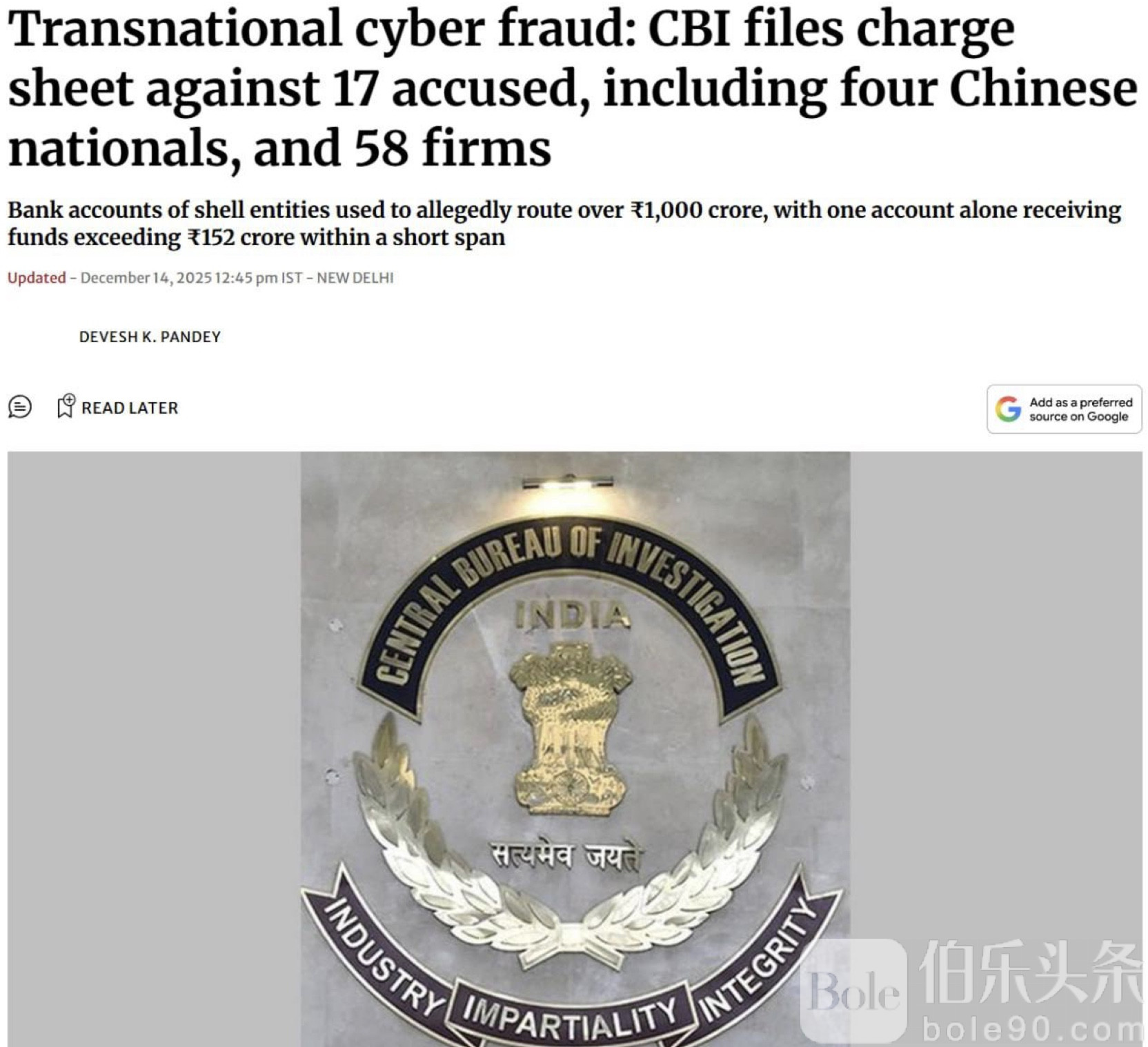 伯乐头条专讯: 印度中央调查局(CBI)12月14日正式对一桩震惊国际的跨国网络诈骗案提起诉讼,涉及17名被告及58家公司,其中包括4名中国公民。调查显示,该诈骗集团自2020年起运作,手法五花八门,从假贷款App、虚假投资、庞氏骗局,到兼职招聘与网络游戏欺诈,几乎无所不用其极。