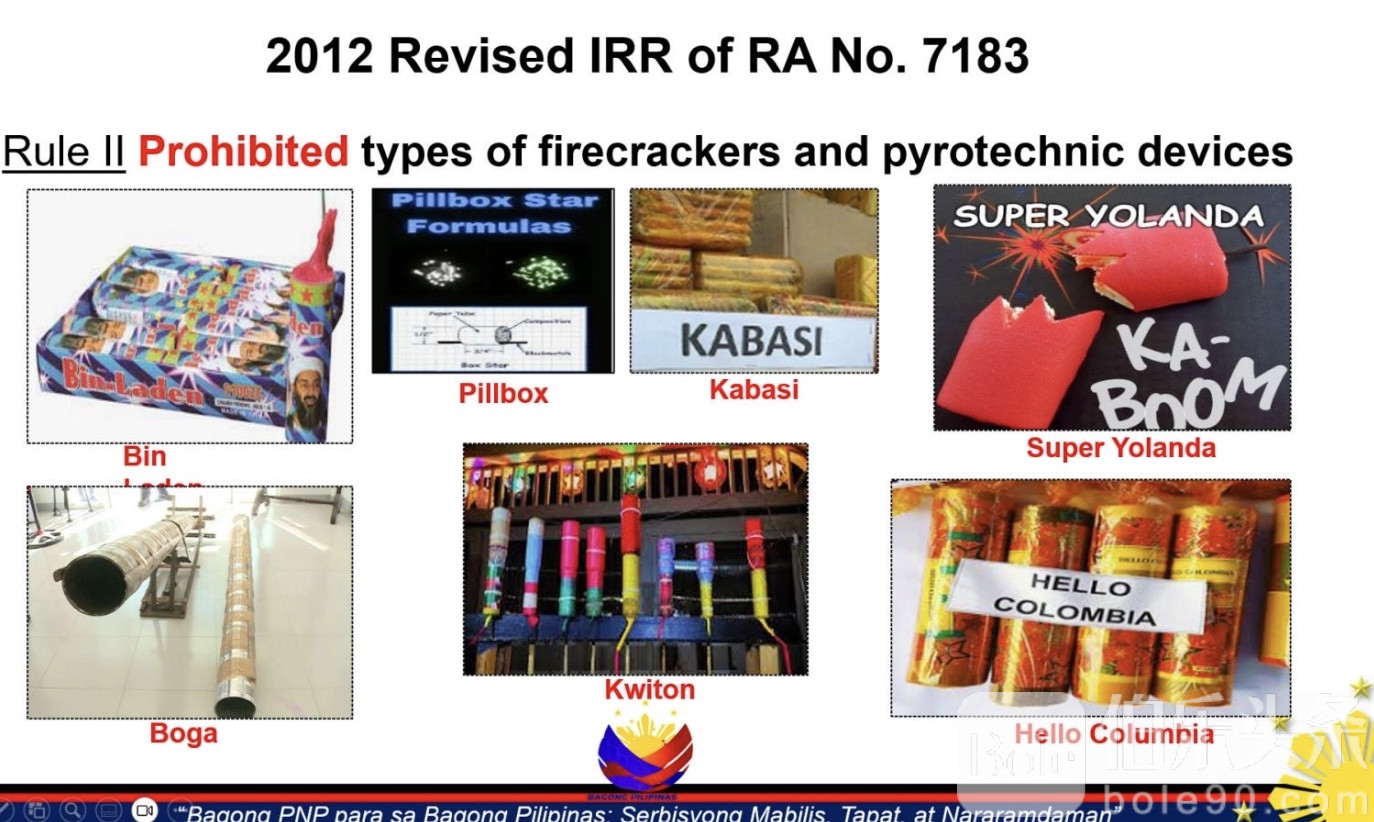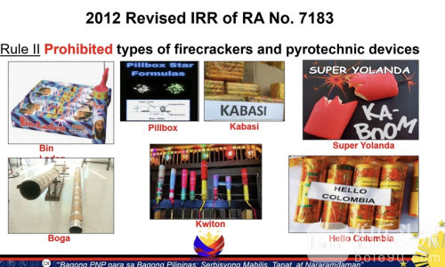 伯乐头条专讯:随着圣诞、新年临近,菲律宾警方开始提前“敲警钟”。12月15日,菲律宾国家警察(PNP)枪械与爆炸物管理办公室对外公布了一份严禁燃放的爆竹及烟火产品清单,并再次呼吁民众,尤其是外籍人士,务必遵守当地规定,避免因一时热闹惹上不必要的麻烦。